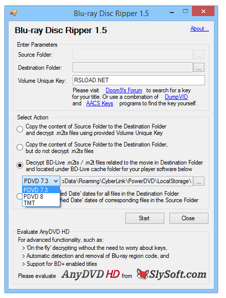 Blu-ray Disc Ripper v1.5 — компактная утилита для копирования и расшифровки данных с Blu-ray дисков, позволяющая создавать резервные копии контента на жёстком диске без потери качества.