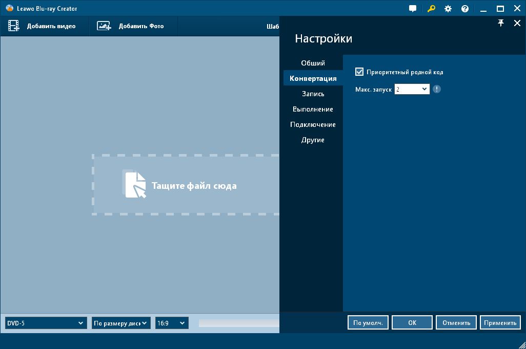 Работа с Leawo Blu-ray Creator