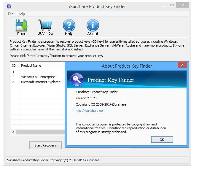 iSunshare Product Key Finder 2.1.20 — это специализированное приложение, позволяющее быстро восстановить лицензионные ключи от установленных программ и операционной системы. Программа поддерживает широкий спектр продуктов, включая Windows, Microsoft Office, Adobe Creative Suite, SQL Server и другие. Простой интерфейс и минимальные требования делают её удобным инструментом для пользователей, столкнувшихся с утерей лицензий.
