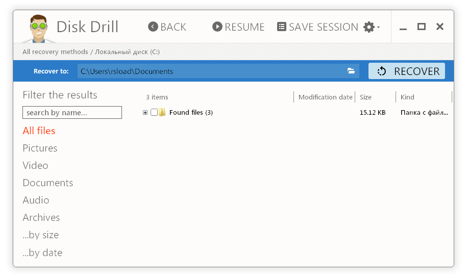 - Несколько режимов сканирования: быстрый поиск и глубокий анализ диска