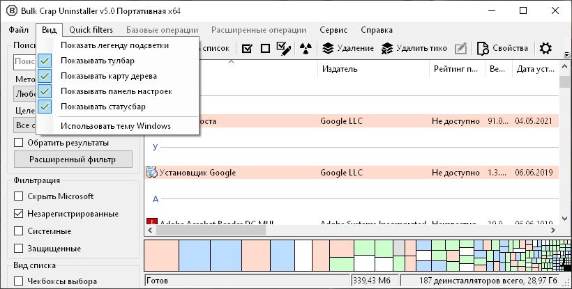 Bulk Crap Uninstaller представляет собой инструмент с открытым исходным кодом, предназначенный для эффективного управления установленным ПО. Программа позволяет анализировать список всех приложений, включая системные компоненты, и выполнять их удаление по одному или группами. Благодаря интуитивному дизайну и чёткой структуре меню пользователь быстро осваивает функционал после первого запуска.
