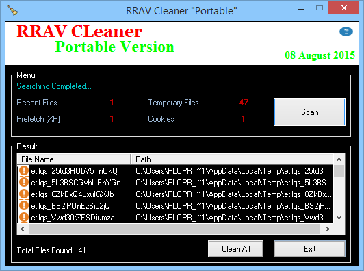 Использование программы не вызывает трудностей даже у новичков. После запуска файла RRAV.Cleaner.Portable.1.0 пользователь сразу видит основное окно с единственной кнопкой Scan. После нажатия начинается процесс обнаружения ненужных файлов в системных каталогах, таких как %TEMP%, Prefetch, кэш браузеров и другие. По завершении сканирования утилита автоматически предлагает удалить найденные элементы, освобождая дисковое пространство без дополнительных действий. Вся работа проходит в фоновом режиме и не требует вмешательства пользователя. Подойдёт для регулярного использования перед обслуживанием ПК или перед передачей устройства в ремонт.