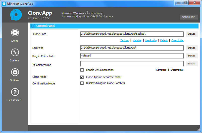 Программа CloneApp не требует прав администратора и может запускаться с любого внешнего носителя, включая флешки и внешние диски.