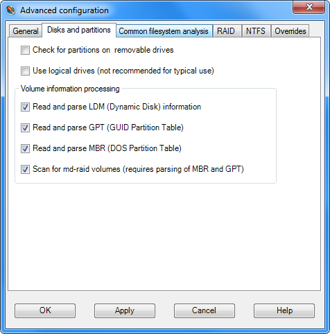 - Глубокое сканирование файловых систем FAT, NTFS, ext2/3/4, XFS