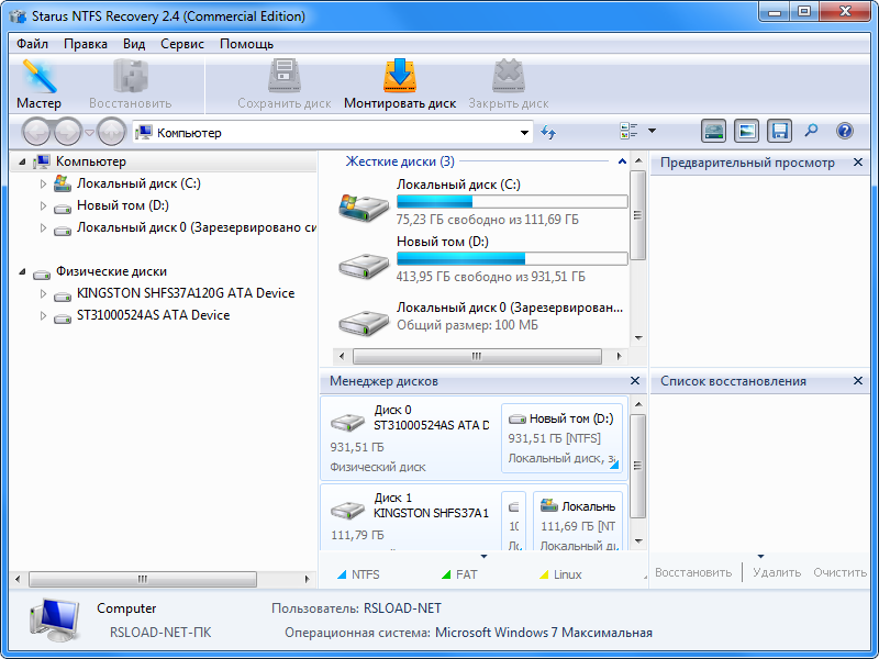 Работа с Starus NTFS / FAT Recovery