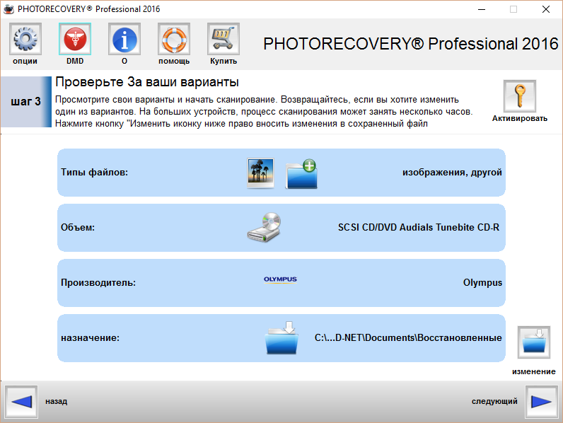 - Пошаговый мастер, направляющий пользователя на всех этапах восстановления