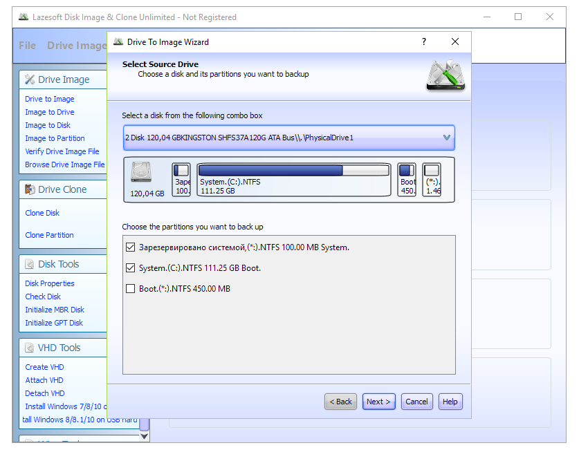 Работа с Lazesoft Disk Image Clone