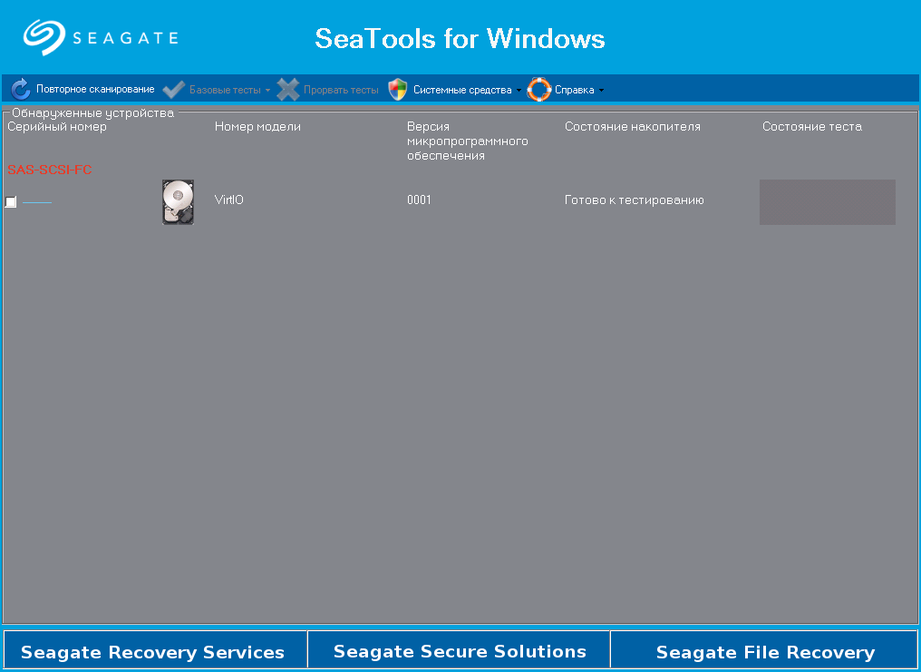 Программа предлагает интуитивно понятный интерфейс, несмотря на несколько устаревший внешний вид. После запуска Seagate SeaTools пользователь видит список подключённых дисков, включая устройства других производителей, хотя основная диагностика ориентирована на продукцию Seagate. Можно выбрать быстрый тест для проверки общего состояния или углублённый анализ, который занимает больше времени, но даёт более детальные результаты. Все действия доступны через основное меню, что обеспечивает быстрый доступ к нужным функциям.
