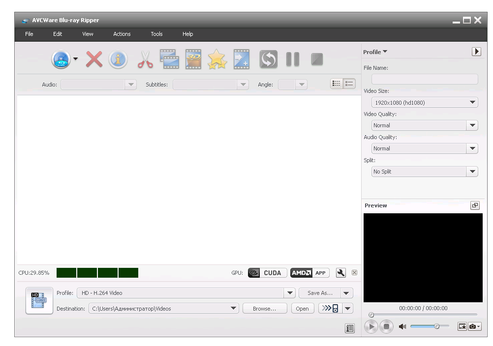 Работа с AVCWare Blu-ray Ripper