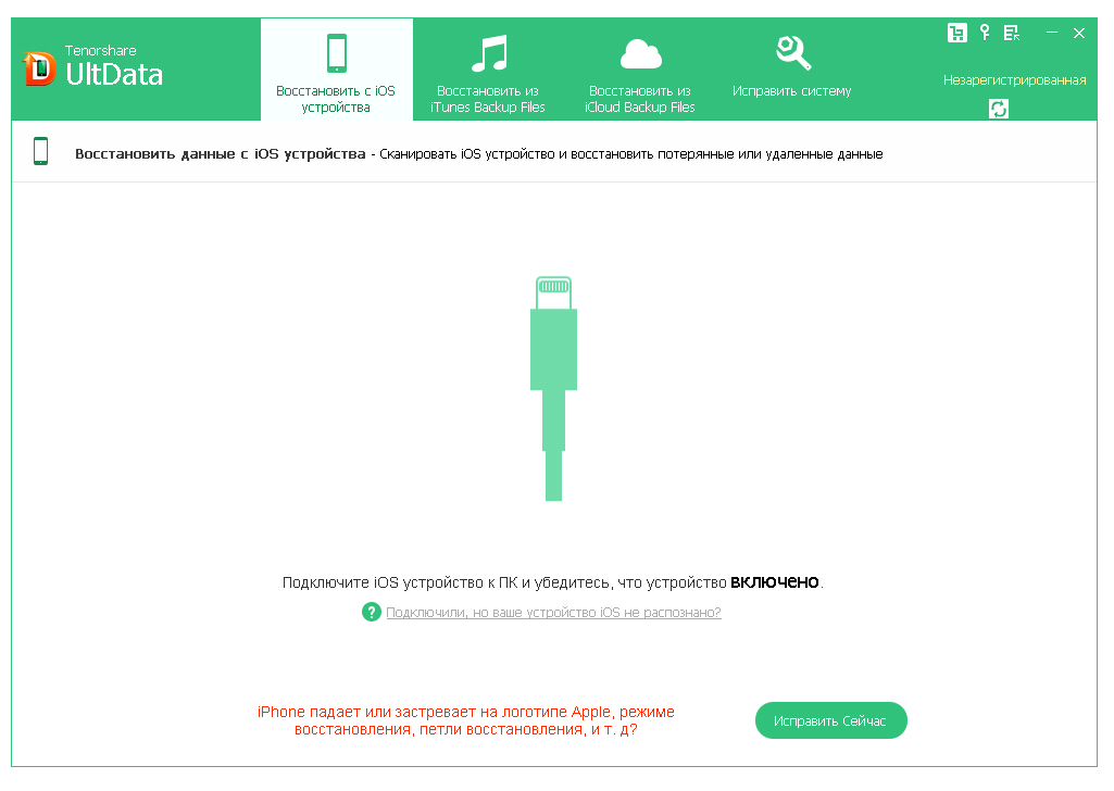 Работа с Tenorshare UltData