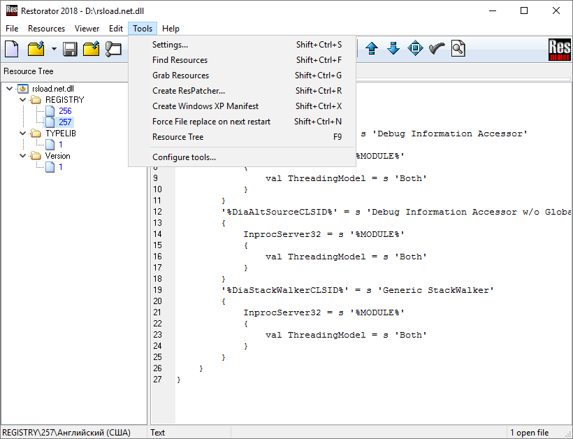 - Пользователи могут извлекать изображения, значки, строки, диалоговые окна и другие компоненты напрямую из бинарных файлов.