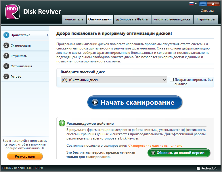 Работа с ReviverSoft Disk Reviver