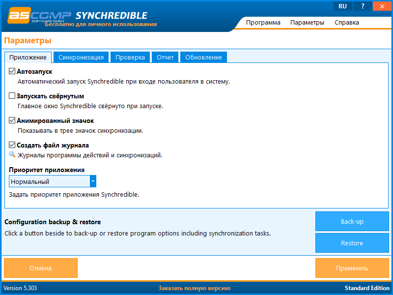 Одной из главных особенностей Synchredible является возможность синхронизации только изменённых или уникальных файлов, что экономит время и место на диске.