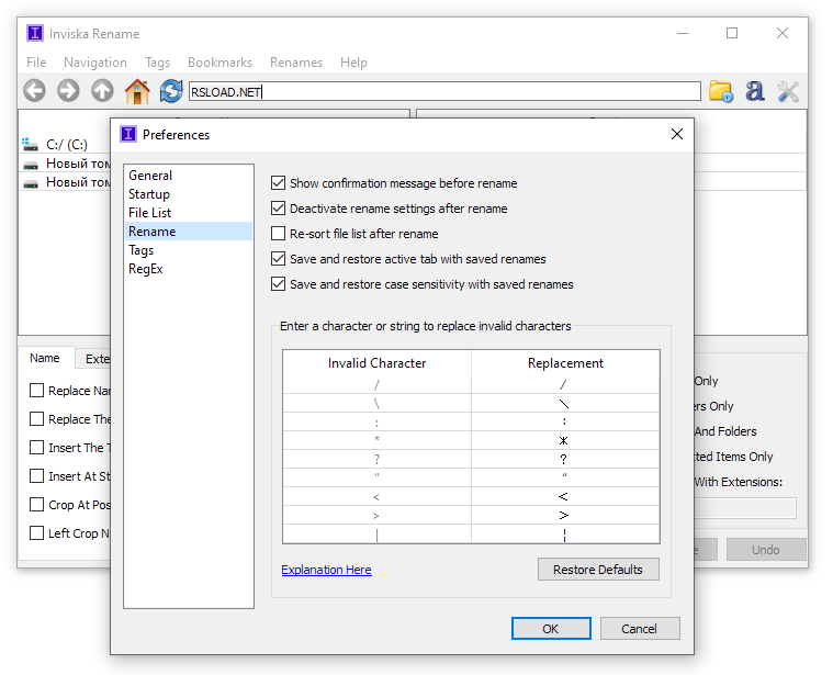 Работа с Inviska Rename