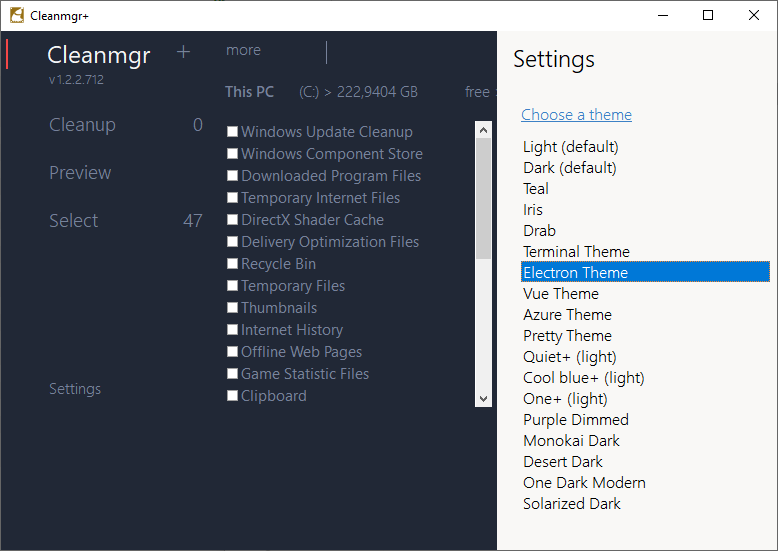- Присутствует поддержка смены тем оформления, что позволяет адаптировать внешний вид под предпочтения пользователя.