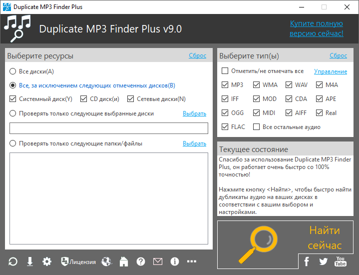 - Гибкие настройки сканирования — выбор дисков, папок, исключение или включение каталогов