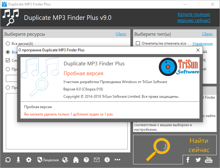 Duplicate MP3 Finder Plus разработана компанией TriSun Software Inc и предназначена для быстрого и точного выявления повторяющихся аудиозаписей на жёстких дисках, съёмных носителях, сетевых папках и даже на компакт-дисках. В отличие от простых инструментов, которые сравнивают только метаданные, эта программа анализирует сам аудиопоток, что позволяет избежать ложных срабатываний и повысить точность поиска. Поддержка широкого спектра форматов, включая MP3, WMA, OGG, FLAC, WAV и MOD, делает её подходящей для пользователей с любыми типами музыкальных библиотек. Наличие портативной версии позволяет запускать программу с флешки без установки, что особенно удобно при работе на чужих компьютерах.