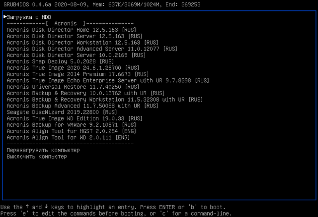 Работа с Acronis BootCD