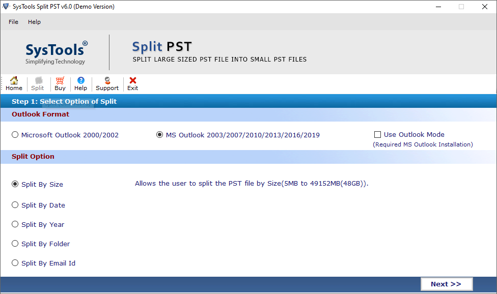 Программа гарантирует целостность данных и не допускает потери информации при разбиении PST-файлов.