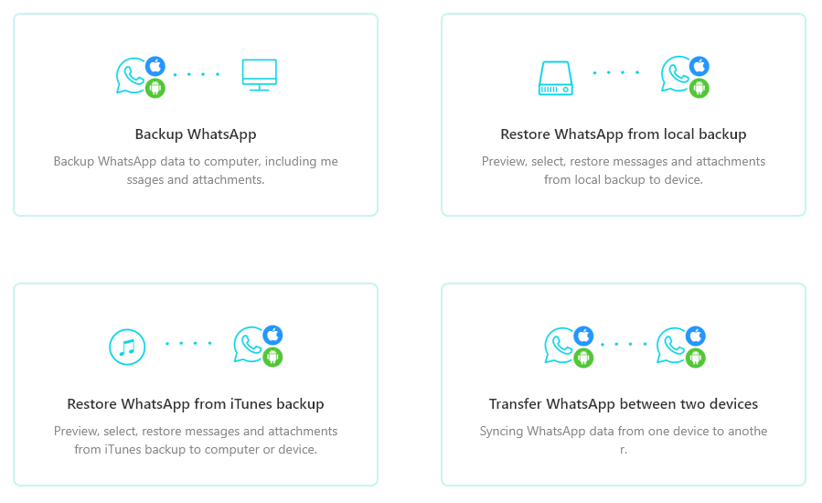 - Поддержка резервного копирования чатов WhatsApp с iOS и Android