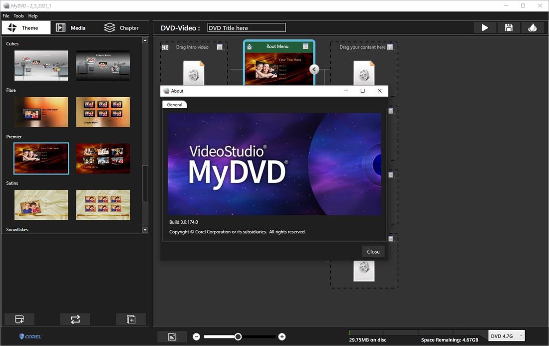 Corel VideoStudio MyDVD позволяет превратить обычное видео в полноценный DVD-проект с интерактивными меню и структурированными главами.