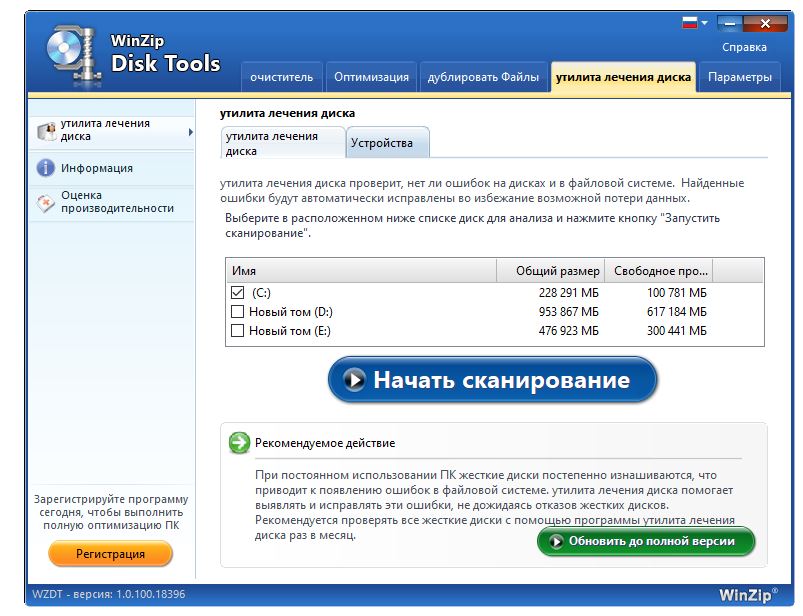 Работа с WinZip Disk Tools