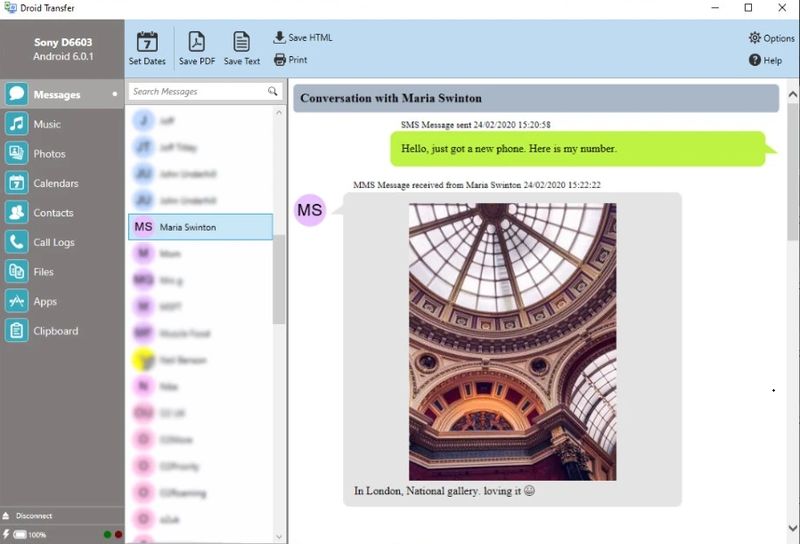 Чтобы начать использовать Droid Transfer, достаточно запустить приложение на компьютере и установить на смартфоне сопутствующее мобильное приложение. После этого оба устройства подключаются по Wi-Fi, обеспечивая стабильное соединение для быстрой передачи файлов. Пользователь может просматривать содержимое телефона, выбирать нужные папки с фото, документами или музыкой и переносить их на жёсткий диск ПК всего в несколько кликов. Особое внимание уделено работе с текстовыми сообщениями — их можно экспортировать в PDF для удобного чтения или сохранять как HTML-страницы для архивирования. Также поддерживается копирование контактов, чтобы избежать потери важных номеров в случае утери или поломки устройства. Передача больших объёмов данных происходит без потери качества и с минимальным временем ожидания.