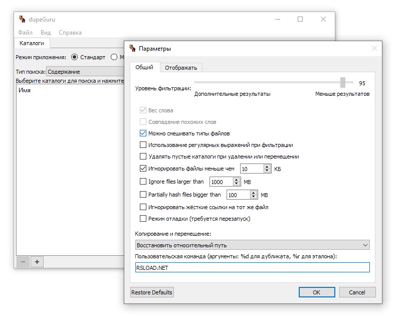 Работа с dupeGuru
