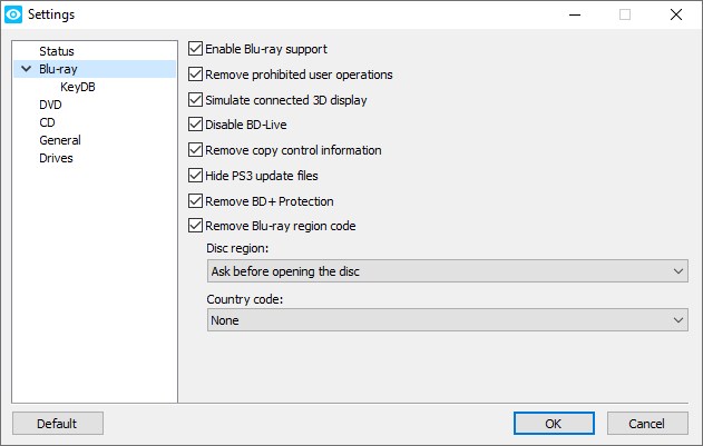 - Поддержка самых распространённых типов защиты, включая AACS и Copy Protection