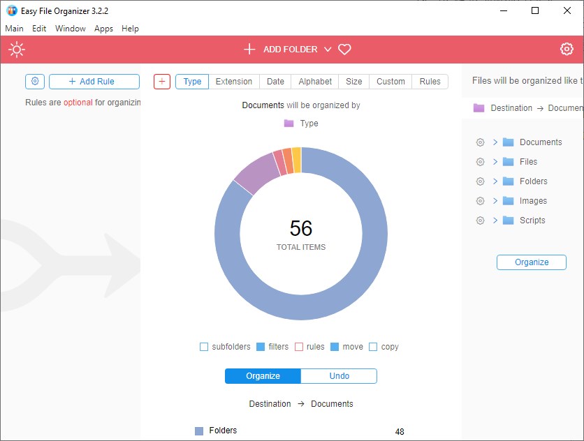 - Easy File Organizer обеспечивает высокую степень персонализации через расширенные настройки