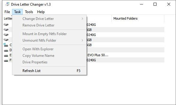 Drive Letter Changer 1.4 — компактная и портативная утилита для изменения буквы диска на Windows. Программа работает с любыми накопителями: HDD, SSD, USB-флешками и внешними жесткими дисками. Утилита не требует установки и удобна в использовании.