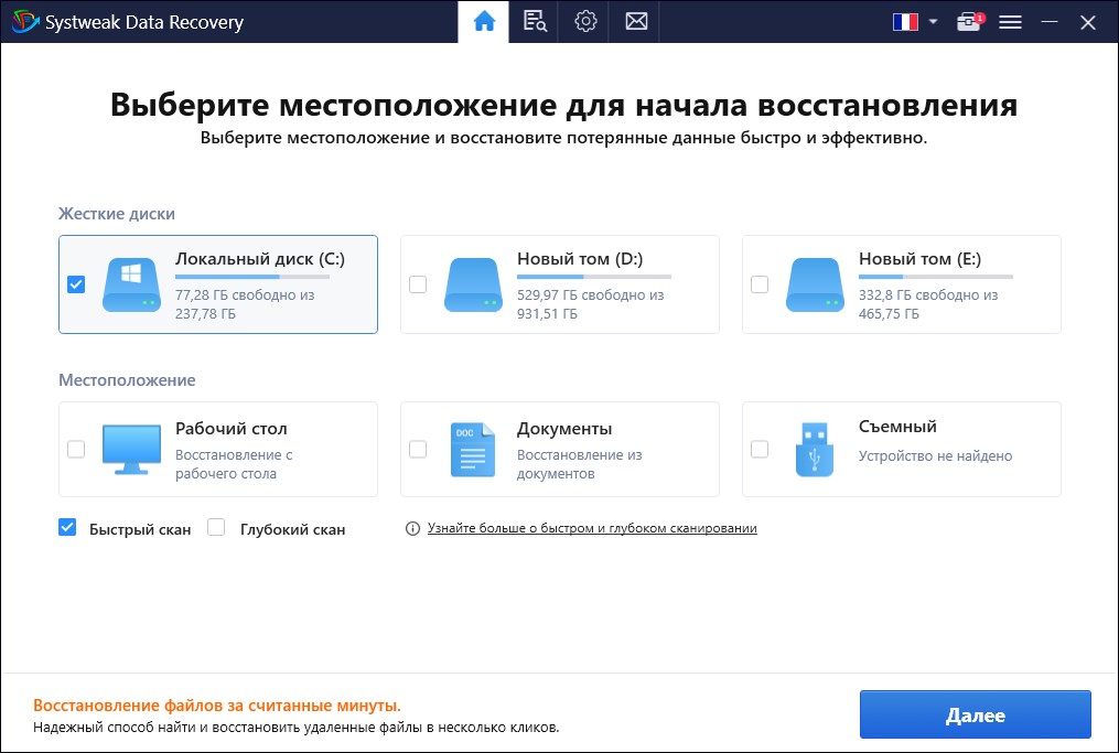 Работа с Systweak Data Recovery