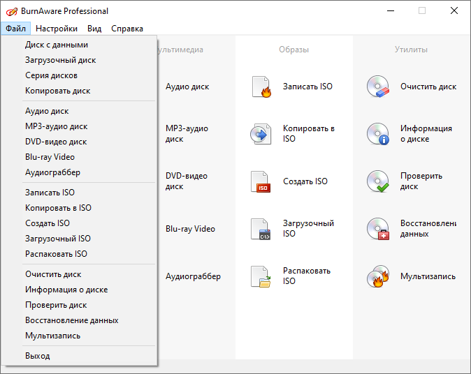 Работа с BurnAware
