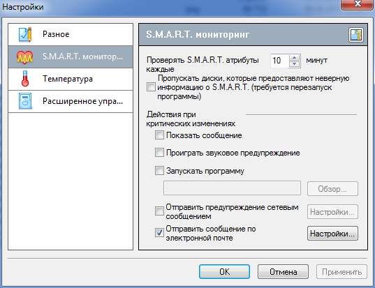 - Поддержка мониторинга состояния любого подключённого жесткого диска или SSD