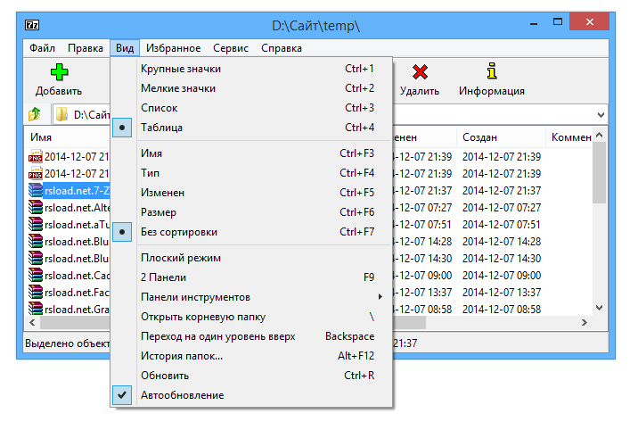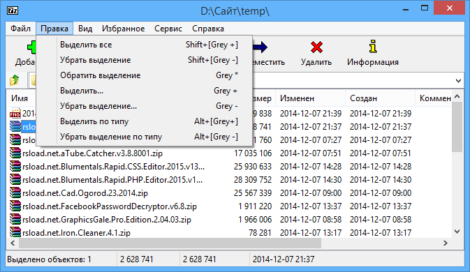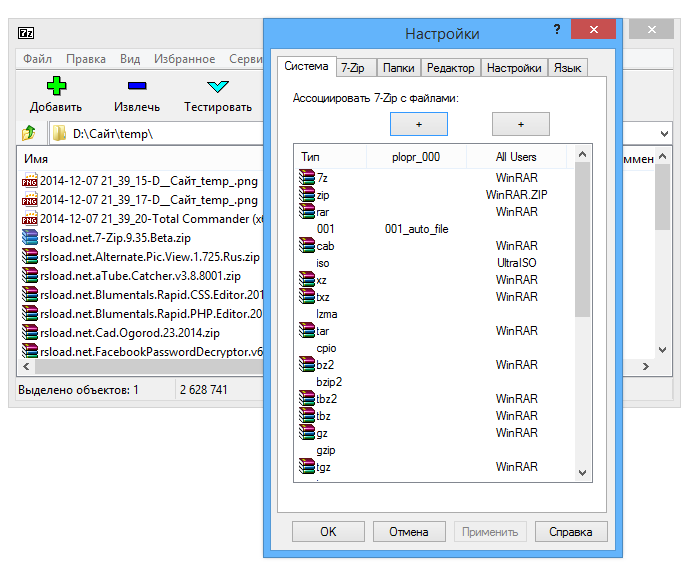 - Высокая степень сжатия файлов, особенно в формате 7z