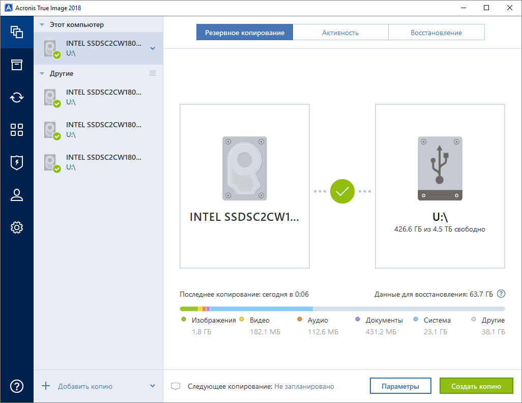 - Автоматическое создание образов по расписанию, включая ежедневное и еженедельное копирование