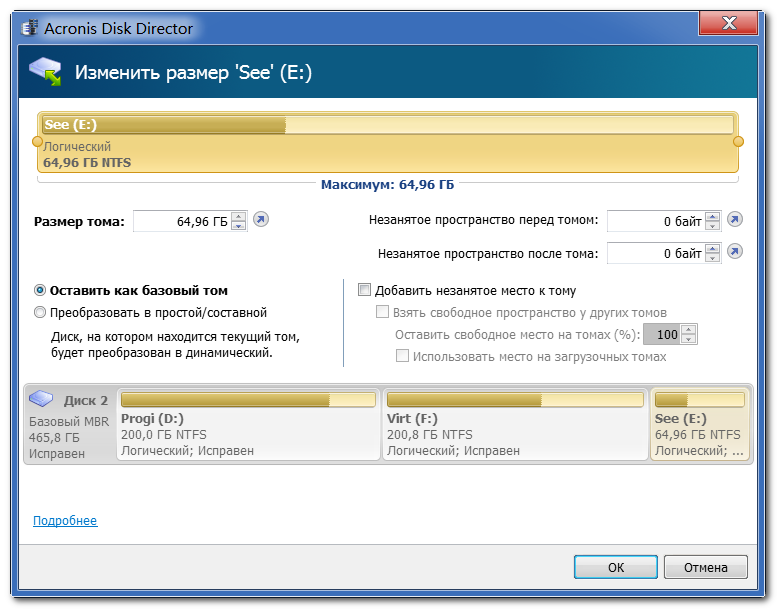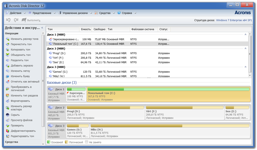 Работа с Acronis Disk Director