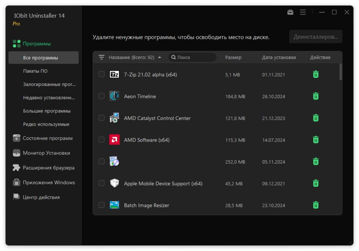 IObit Uninstaller — это надежное решение для эффективного удаления приложений, которое превосходит стандартные средства Windows. Версия 15.2.0.2 предлагает улучшенный движок сканирования, позволяющий находить и удалять следы программ даже после их деинсталляции через классический способ. Утилита поддерживает работу с 32- и 64-битными системами, включает функции пакетного удаления, анализа дискового пространства и чистки реестра. Благодаря встроенной поддержке русского языка, пользователи могут комфортно работать с интерфейсом без необходимости перевода.