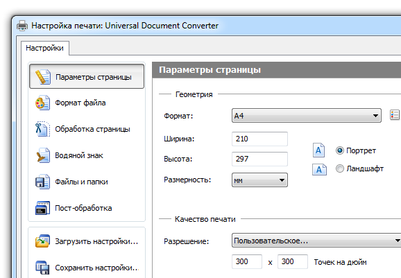 Использование программы не требует специальных навыков. После установки в списке доступных принтеров появляется новый пункт — Universal Document Converter. При выборе этого принтера в любом приложении (Word, Excel, AutoCAD, браузер и др.) запускается процесс конвертирования. Перед сохранением можно изменить параметры: выбрать графический формат (JPEG, PNG, TIFF и др.), указать DPI, настроить ориентацию и качество сжатия. Также доступна функция объединения нескольких документов в один многостраничный файл. Поддерживаются фоновые режимы работы, что удобно при массовом конвертировании. Результат сохраняется в указанную папку с заданными параметрами.