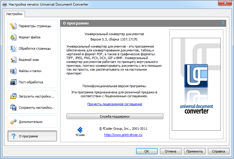 Universal Document Converter разработана компанией fCoder Group, Inc. и представляет собой мощный инструмент для конвертирования документов в PDF и изображения высокого качества. Установка происходит в виде виртуального принтера, что делает процесс преобразования максимально простым — достаточно выбрать нужный принтер при печати документа. Поддерживается широкий спектр входных форматов: текстовые файлы, таблицы, чертежи, презентации, электронные письма и веб-страницы. После конвертирования пользователь получает файл, готовый к публикации, архивированию или отправке по электронной почте. Интеграция с системой работает стабильно на всех современных версиях Windows.