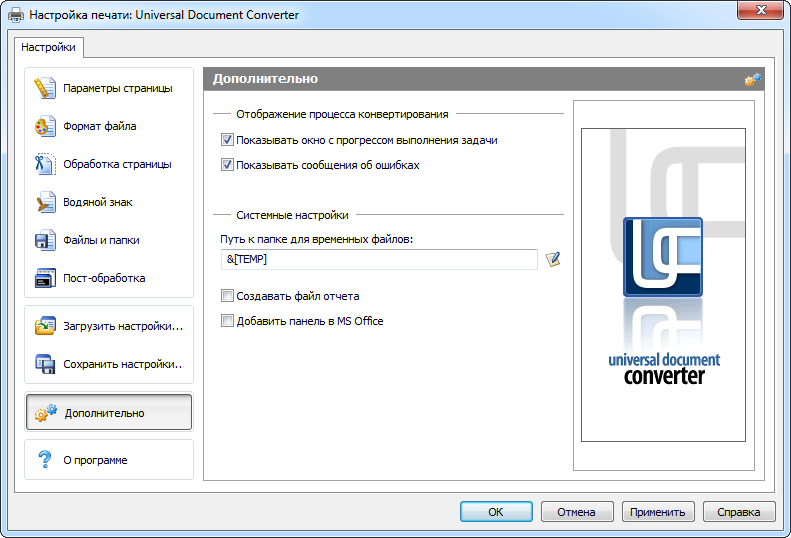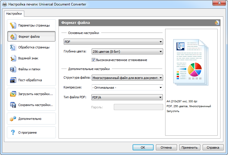 Universal Document Converter — это эффективное решение для преобразования различных типов документов в формат PDF и популярные графические форматы с широкими возможностями настройки. Программа работает как виртуальный принтер, позволяя конвертировать в нужный формат любой файл, который можно распечатать. Благодаря интуитивному интерфейсу и поддержке множества форматов, инструмент подходит как для домашнего, так и для профессионального использования. Утилита поддерживает многостраничные документы, автоматическую обрезку полей и настройку разрешения вывода.