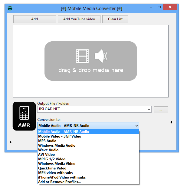 - Поддержка конвертации MP3, WAV, WMA в AMR и другие форматы