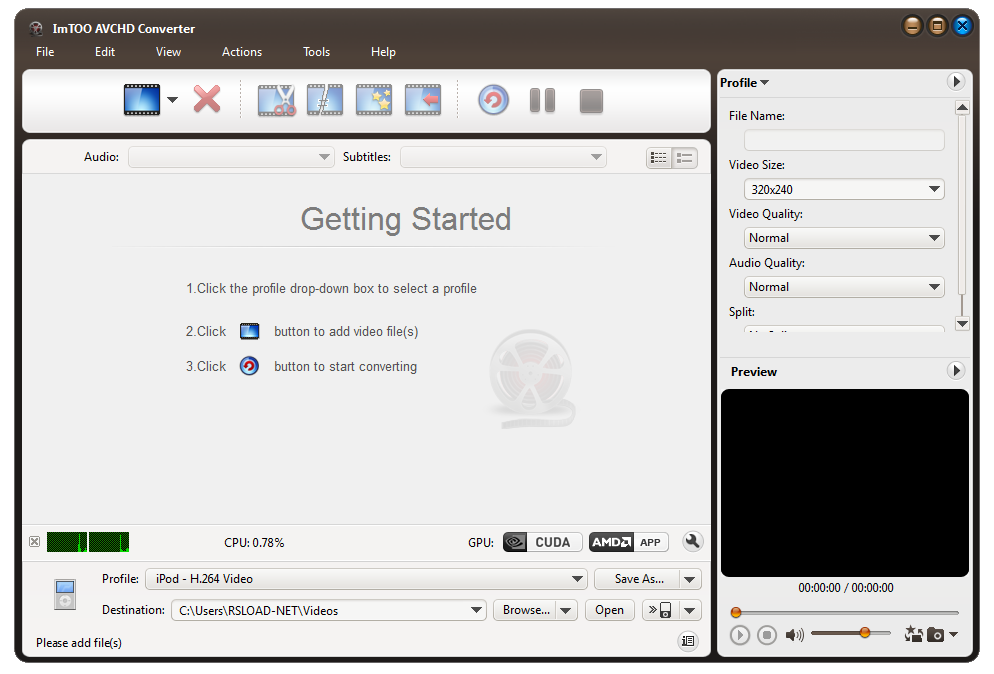 Работа с ImTOO AVCHD Converter