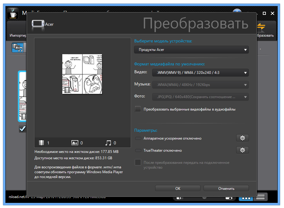 Работа с CyberLink MediaEspresso Deluxe