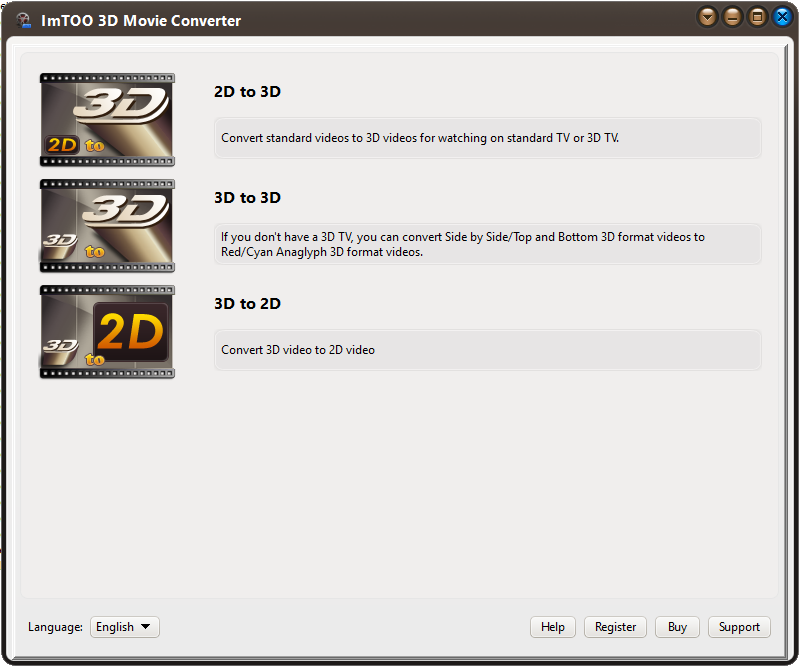 ImTOO 3D Movie Converter — это программа для преобразования видео между 2D и 3D форматами с возможностью тонкой настройки параметров изображения. Инструмент поддерживает конвертацию в обе стороны: из двухмерного в трёхмерное видео и наоборот, а также преобразование одного 3D-формата в другой. Приложение сочетает в себе простоту интерфейса и функциональность, необходимую для качественного рендеринга стереоскопического контента.