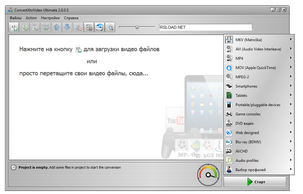 - Поддержка широкого спектра входных и выходных видеоформатов, включая редкие и устаревшие типы файлов