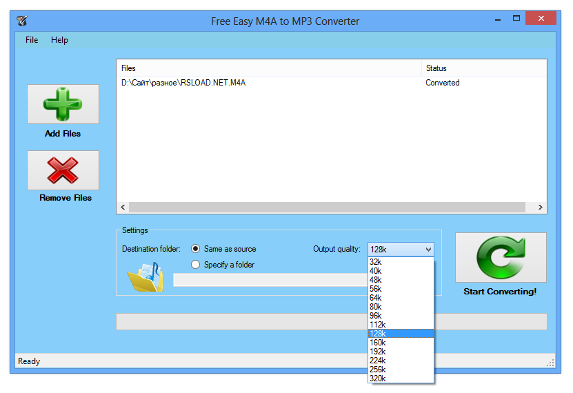 Работа с Free Easy M4A to MP3 Converter