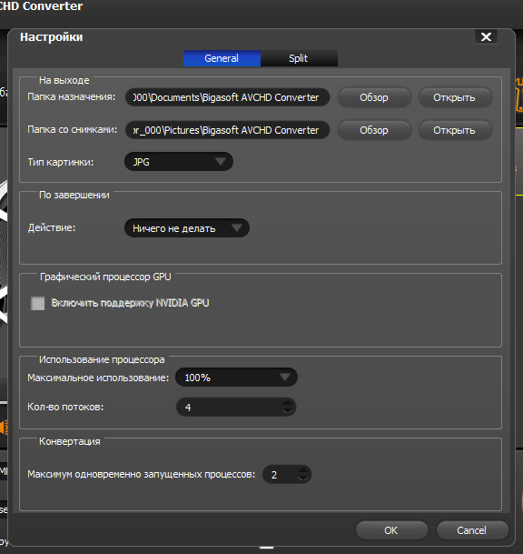 Работа с Bigasoft AVCHD Converter