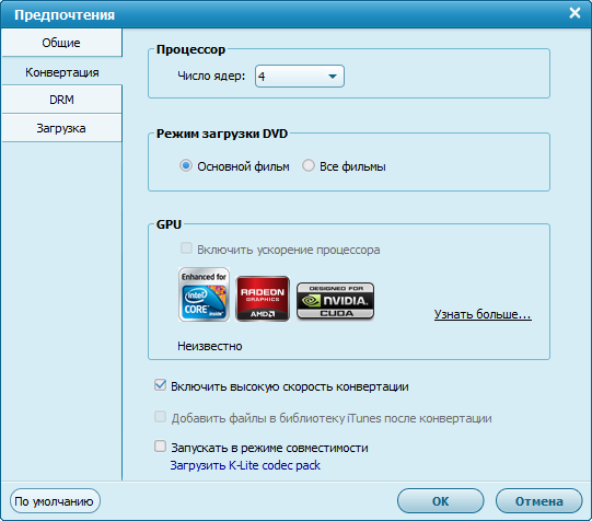 - Программа поддерживает технологию аппаратного ускорения NVIDIA® CUDA для быстрой конвертации видео