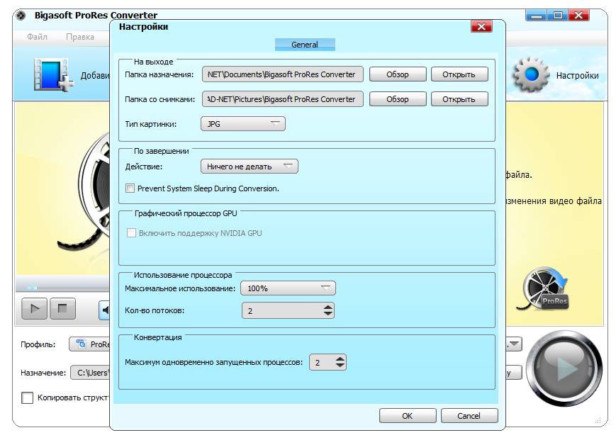 Работа с Bigasoft ProRes Converter